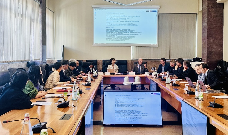 在罗马第二大学,代表团会见该校校长代表(国际事务)比安卡·苏尔帕索(Bianca Sulpasso)一行。来自两校国际合作、国际教育、科研管理有关部门的主要负责人,以及工程、化学、土木、建规学科的有关负责人及代表举行合作洽谈。双方重点回顾了前期在材料、能源领域的合作基础,并就进一步夯实“中意可持续材料与技术联合实验室”建设、联合申报中意科技合作项目,依托学期交换、科研实习等项目逐步扩大学生流动规模 等议题达成多项共识。