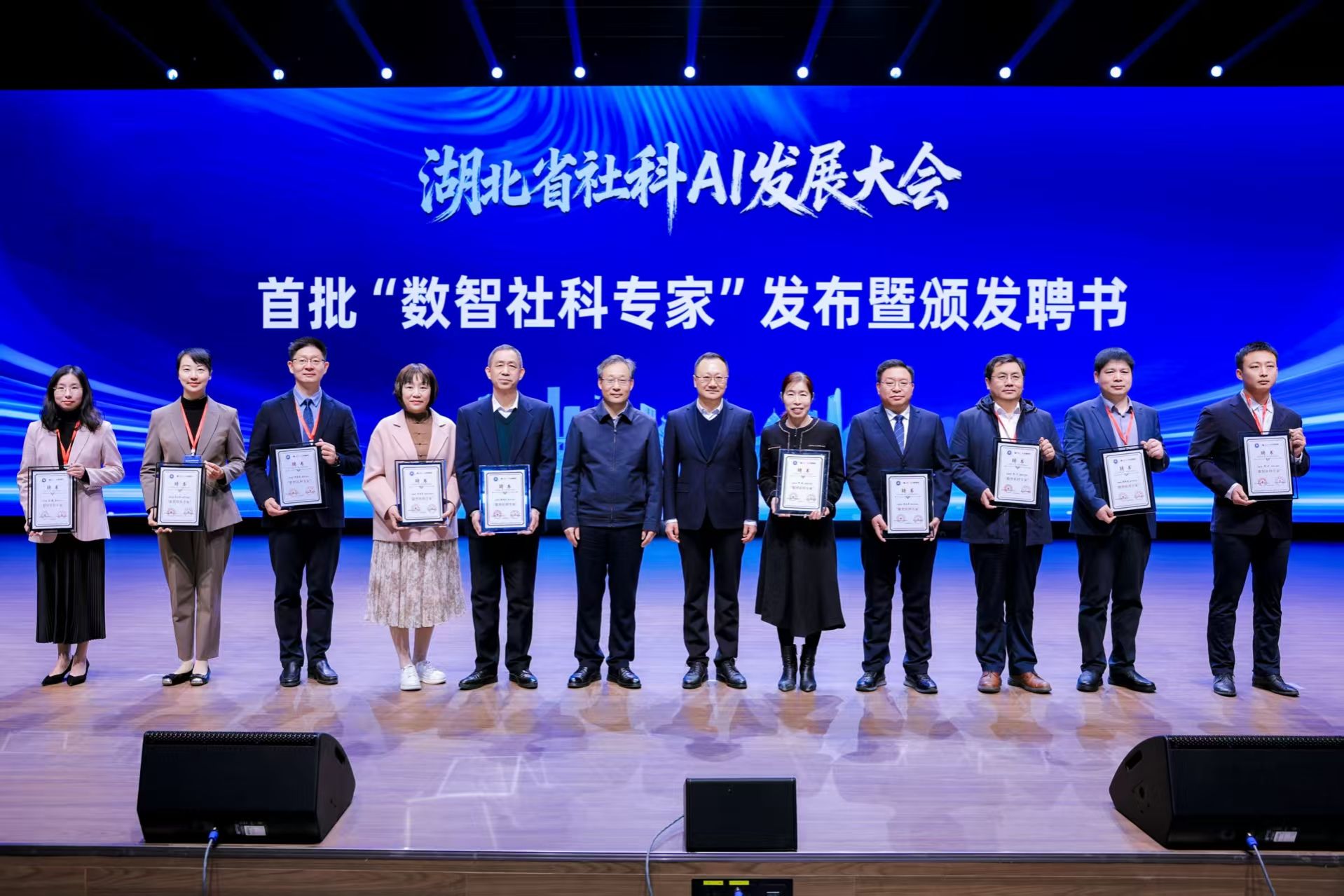大会发布了全国首个省级哲学社会科学人工智能大模型——“湖北社会科学AI模型及其应用服务项目”,推出全国首台社科智能交互机器人“荆哲(惊蛰)”,选聘了全国首批“数智社科专家”。我校马克思主义学院杜志章教授作为首批“数智社科专家”代表与其数字分身进行了对话互动。