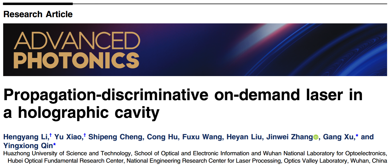 新闻网讯 12月17日,光电信息学院秦应雄团队在Advanced Photonics发表题为“传播可分辨按需全息腔激光器”(Propagation-discriminative on-demand laser in a holographic cavity)的研究论文。该项工作首次提出基于逆Fox-Li设计框架,并完全由衍射理论设计全息谐振腔(HoloCavity),通过级联纯相位全息图的波前主动调控与长距离自由空间传播中的衍射损耗调制,实现了无辅助非平面光学元件的多手性模式同步自再现与抑制。这一新方案有望成为一种以相位全息为核心的数字激光谐振腔的通用设计范式,打破制约结构光激光源实用化的关键瓶颈。
