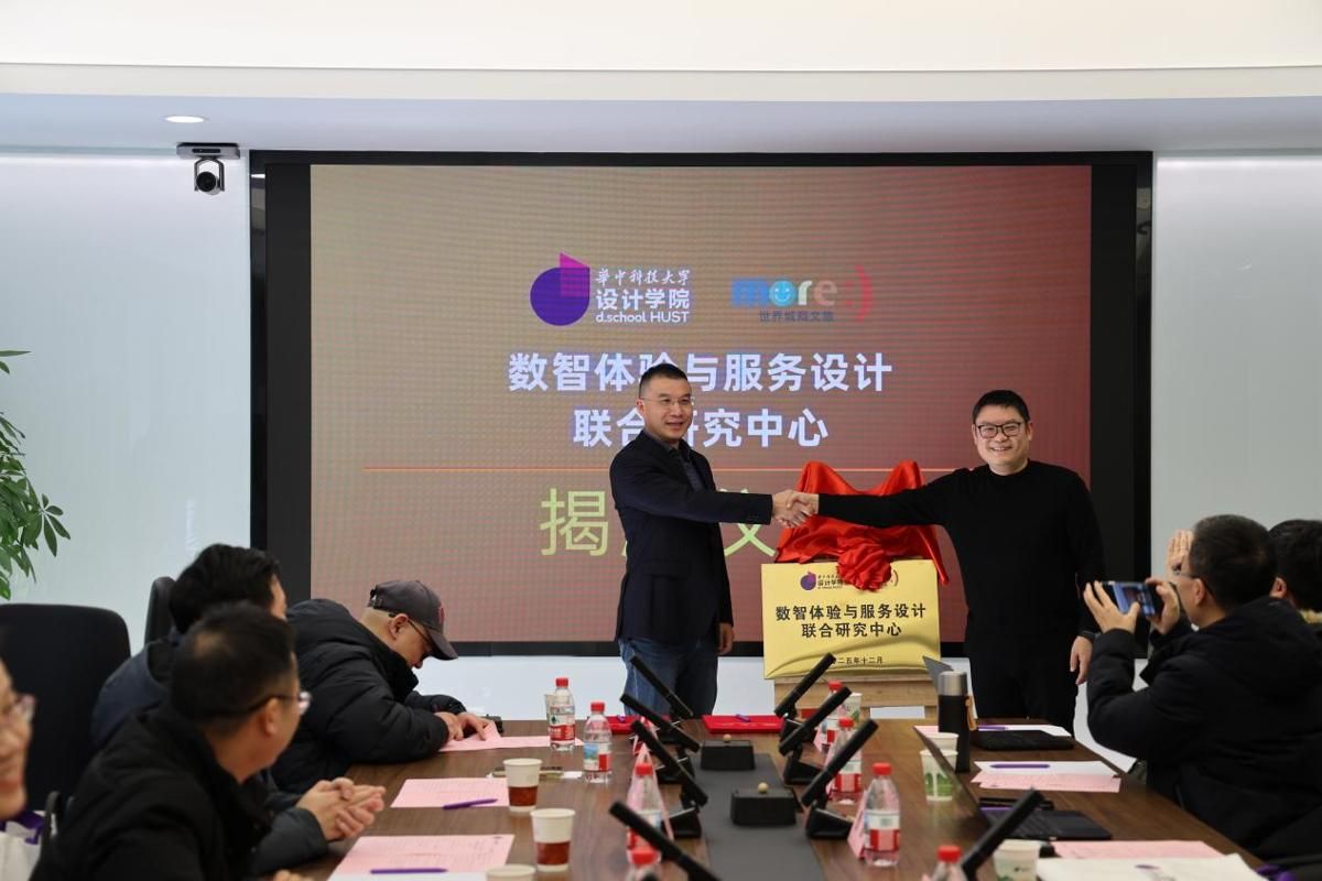 新闻网讯 12月26日上午,设计学院与武汉世界城商文旅有限公司联合共建的“数智体验与服务设计联合研究中心”揭牌仪式在西七楼举行。校企双方代表、行业伙伴和师生代表共同见证这一践行国家战略、深化产教融合、赋能湖北文化发展的重要时刻。