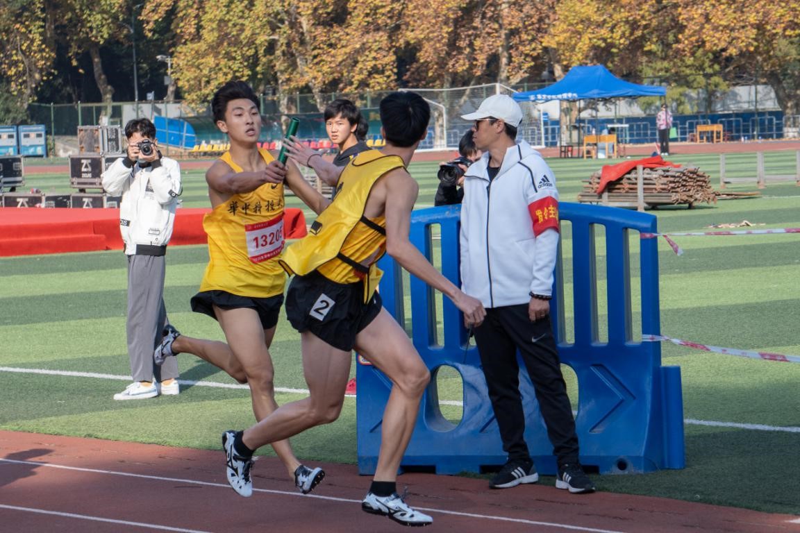 在裁判员广播公示本科男子甲组400米第4组运动员名单后,观众席上突然传来极具气势的加油呐喊声——来自光电信息学院的同学们在为杨宇哲打气。“砰!”随着一声枪响,身穿黄色运动短袖的杨宇哲从选手身影重叠的弯道中冲了出来,并一直保持着较大优势,最终以57.39秒的成绩位列小组第一、摘得银牌。“对自己的身体素质一直有自信,中长跑算是自己的强项。”他在赛后说道,“中学的课业压力可能不是特别大,所以比较重视体育方面对学生的培养。从小到大我也收获了很多运动的经验和快乐。”随后杨宇哲又和队友们一起参加了本科男子甲组4×400米的比赛,以3分57秒的好成绩夺得了冠军。总结成功的原因,他非常敬佩、也很感激优秀的队友,“我觉得我们团队最大的优点就是互相信任吧。”正是在团队的密切配合和相互信任下,杨宇哲才能在短时间内两次发挥出高水平。