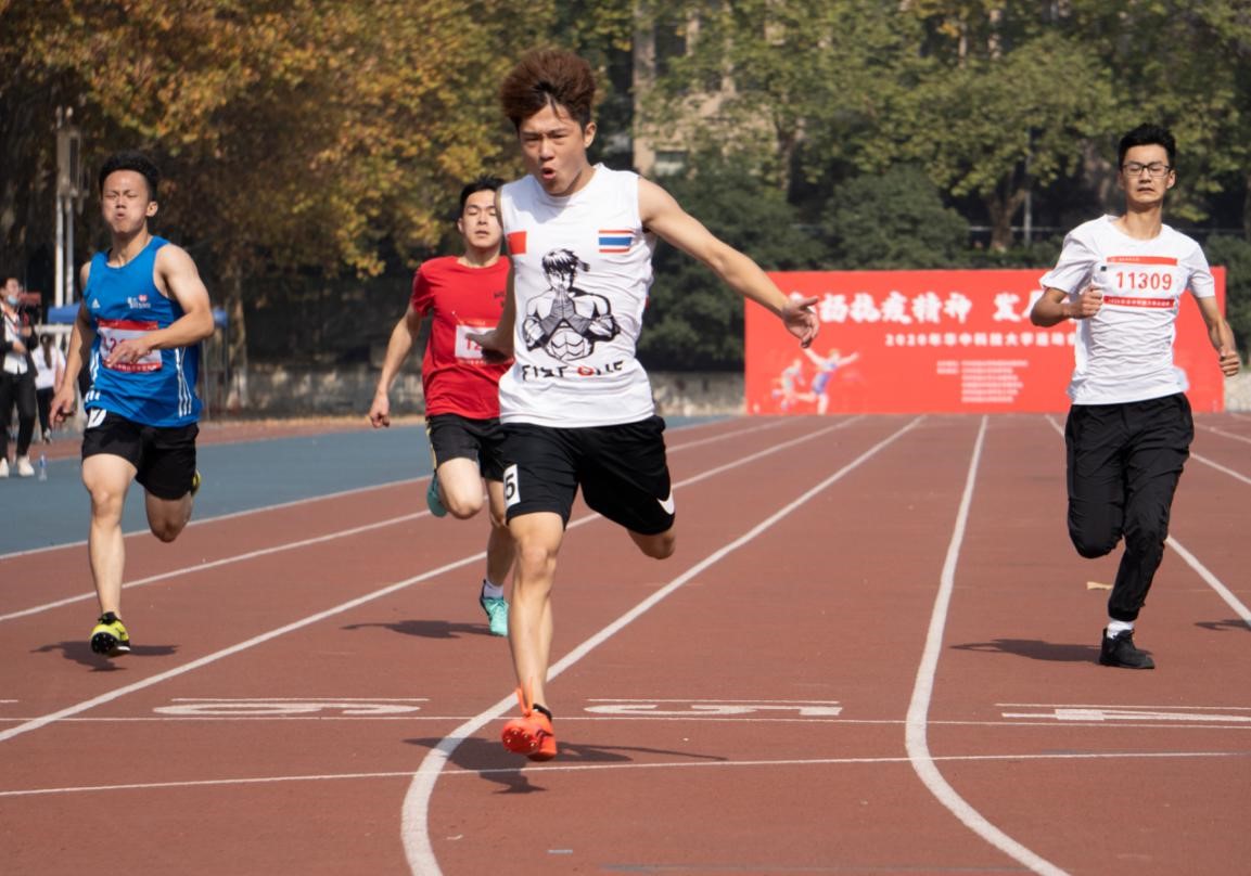 11月6日下午1点30分,阳光明媚。随着第一声哨响,100米本科男子甲组决赛在中操拉开帷幕。来自基础医学院的王子源,凭借微弱的优势,以11.93秒的成绩摘得本次校运会学生径赛的第一枚金牌。