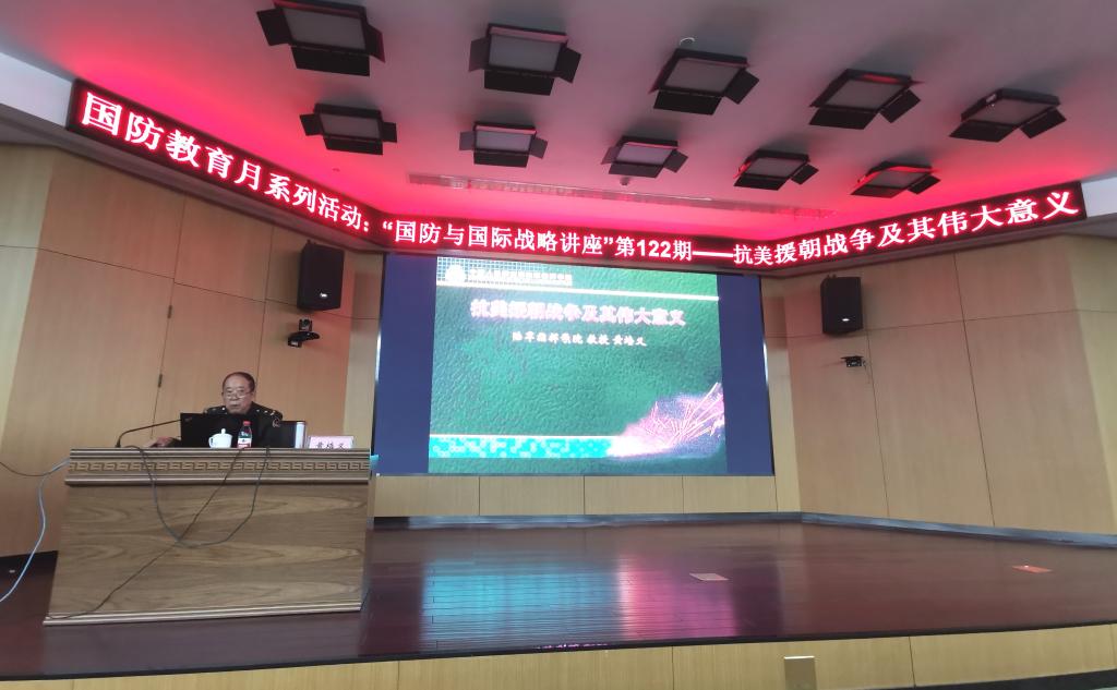 新闻网讯(通讯员 张绍浩)11月23日,国防教育月系列活动之“国防与国际战略讲座第122期——“抗美援朝战争及其伟大意义在八号楼求是报告厅开讲。讲座由中国人民解放军陆军指挥学院首席教授黄培义少将主讲,副校长梁茜参加活动。