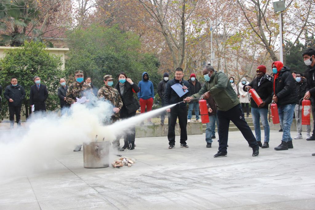 新闻网讯(通讯员 武杨 崔梅)12月10日下午,由国际教育学院联合喻家山派出所、校保卫处、校医院、丹田物业等开展的2020年rabey雷竞技国际学生消防演习活动在友谊公寓举行。