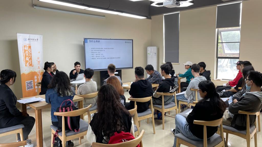 在互动环节中,三位学长学姐对在场同学的疑问给予了细致耐心的分析解答,并为想考研、留学的同学们送上了祝福。