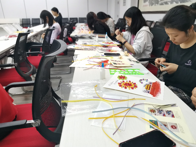 新闻网讯(通讯员 李思铭)5月6日下午,新闻学院心理健康服务中心和服装设计与剪裁协会共同举办“‘艺’‘新’向党,巧手生花”庆祝建党100周年红色手工团体辅导活动,同学们一同制作衍纸艺术作品,将情怀、思想通过衍纸艺术表现出来,献礼建党100周年。学院党委副书记李彬彬,辅导员李思铭、黄启超参加活动。