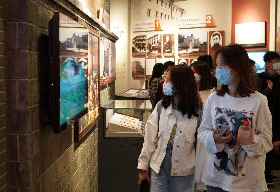第二站中国共产党第五次全国代表大会旧址,同学们仔细阅读石碑上的介绍,切身感受党的老一辈领导人革命的智慧。能源学院2019级本科生田紫漪谈到:“我之前就知道在武汉召开了中共五大,是历史的一大重要转折点,今天在会址纪念馆才真正感受到了那种革命的严肃氛围。而在武汉革命博物馆,我了解了从中共成立一直到今天一路的发展历程,更加深入的了解了中国共产党,有了深刻的历史认同感和责任感。”