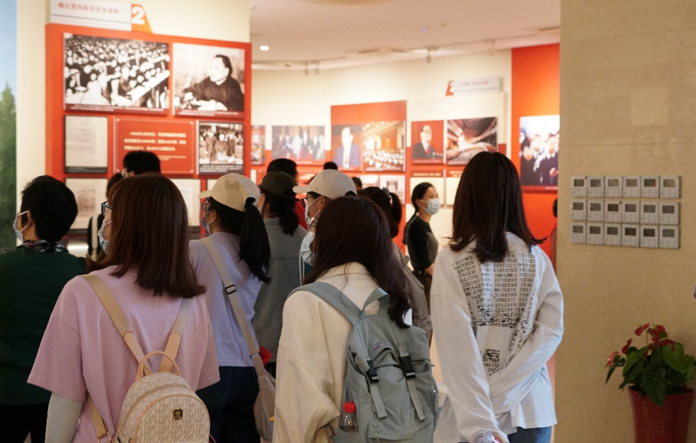 第一站中国共产党纪律建设历史陈列馆全面、客观、真实的反映了中国共产党在不同历史时期的纪律建设理念,战略方针及主要成果。参观陈列馆时同学们常常留连在展柜前,举起相机拍下见证党成长的物件。