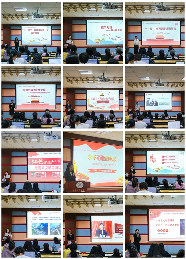 比赛伊始,全体师生起立奏唱国歌,12名主讲人结合中国共产党历史上的重大事件、重要会议、重要地点、重要人物等,以PPT的形式,图文并茂地为大家讲述了鲜活的党史故事和英雄事迹,赢得了在场师生的一致好评。
