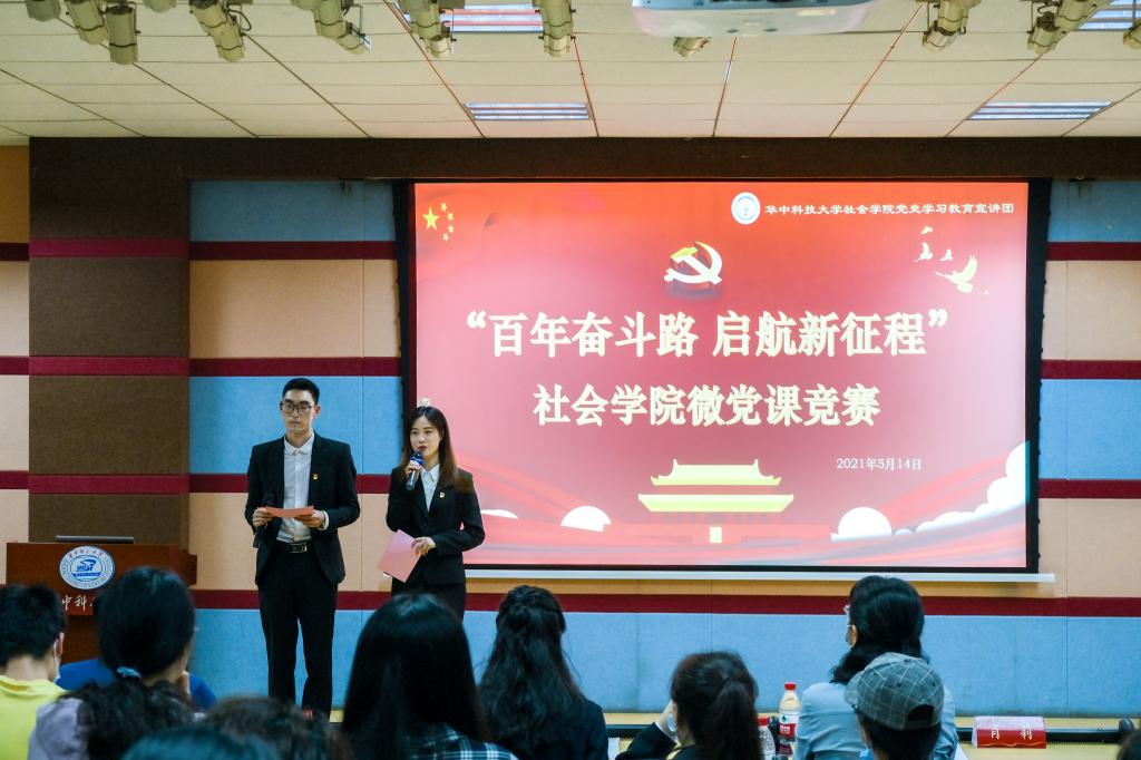 新闻网讯(通讯员 刘梓亚 王雨璇)5月14日下午,社会学院在研究生活动中心举办了“百年奋斗路,启航新征程”微党课竞赛,迎接中国共产党百年华诞,贯彻习近平总书记在党史学习教育动员大会上的重要讲话精神,讲好党史故事,传承红色基因。
