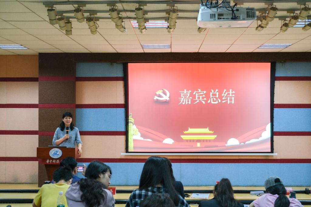 在主讲人展示结束后,社会学院党委书记肖莉作总结发言。肖莉肯定了此次微党课竞赛的积极意义和十二支队伍的优异表现,指出这十二节微党课条理清晰、内容丰富接地气,较好地结合了专业知识和武汉红色资源。肖莉还鼓励大家进一步完善课程内容,赴各班级、社区进行党史宣讲活动。肖莉提出了四点希望和要求:第一,把握“学史明理”要求,在学史知史中把稳思想之舵。把握社会发展的潮流,增强政治判断力、领悟力、执行力。第二,把握“学史增信”要求,在学史知史中坚定理想信念。要深刻铭记中国共产党奋斗百年的光辉历程,深刻认识中国共产党为什么“能”、马克思主义为什么“行”、中国特色社会主义为什么“好”,坚定“四个自信”,增强历史定力。第三,把握“学史崇德”要求,在学史知史中提升思想境界。弘扬优良传统,传承红色基因,坚持为人民服务,树立使命意识,自觉融入爱国情、强国志、抱国行。第四、把握“学史力行”的要求,在学史知史中勇挑担当之责。将“小我”融入“大我”中,用理论指导实践,切实为群众办实事、办好事。