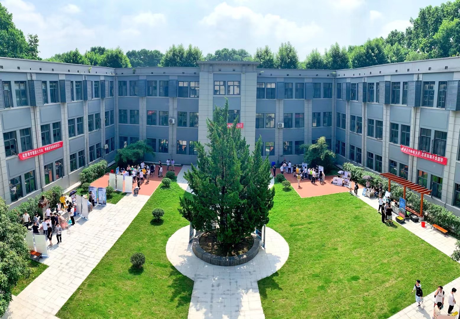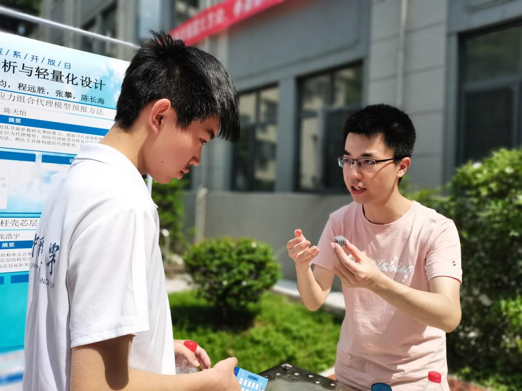 在保证疫情防控要求和实验室保密要求的前提下,东二楼的院子热闹非凡。学院导师和研究生们共同为本科生搭台,介绍实验室的情况。既帮助了本科生了解专业和导师,也促进了研究生之间的学术交流。