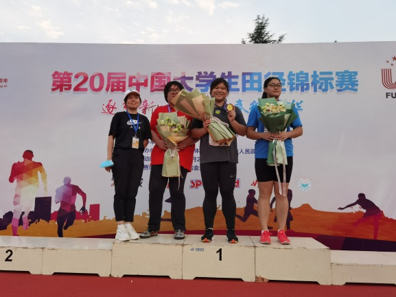麻淑淑(左3)以51.03m获丙组女子铁饼冠军,以15.24m获丙组女子铅球亚军。她说:“2021大田赛,是我作为大学生运动员的最后一场大型比赛了,一金一银的成绩为我的大学运动生涯画上了圆满的句话。不负昨日,不畏明日,新的起点,新的征程。”