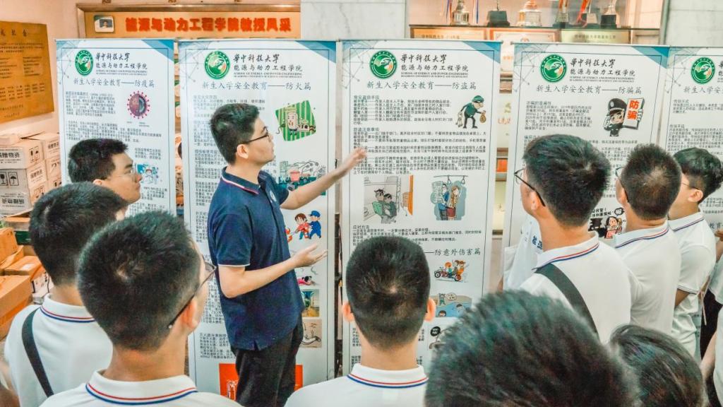 仪式结束后,新生们一齐走进动力楼展厅,聆听安全教育。辅导员详细向同学们讲解各类防火防盗防骗案例和要点。