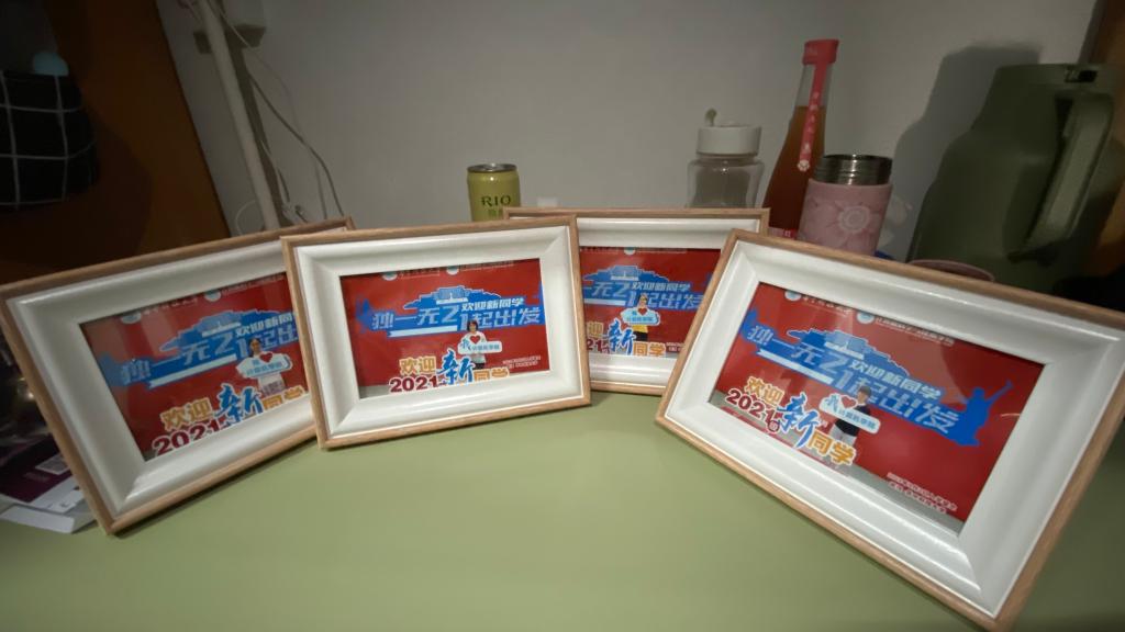 同学们拿到相框,就迫不及待地摆放在了宿舍的书桌上,2110班裴俊博即兴赋诗:华科月饼奇葩馅,香辣牛肉加蜜糖。味虽难言意可见,科技强国记胸膛。获照一框心欢悦,书香园里男儿郎。请党放心有我在,百年路上展锋芒。2103班杨至卓说:“收到月饼和相框的那一刻,我感受到了学院的温暖和关心。月饼上“科技强国”的刻字,提醒着我科技强国,计科先行。相信在华中大的日子里,我必定会如月饼上的刻字一样,用计算机的力量,强大祖国。”