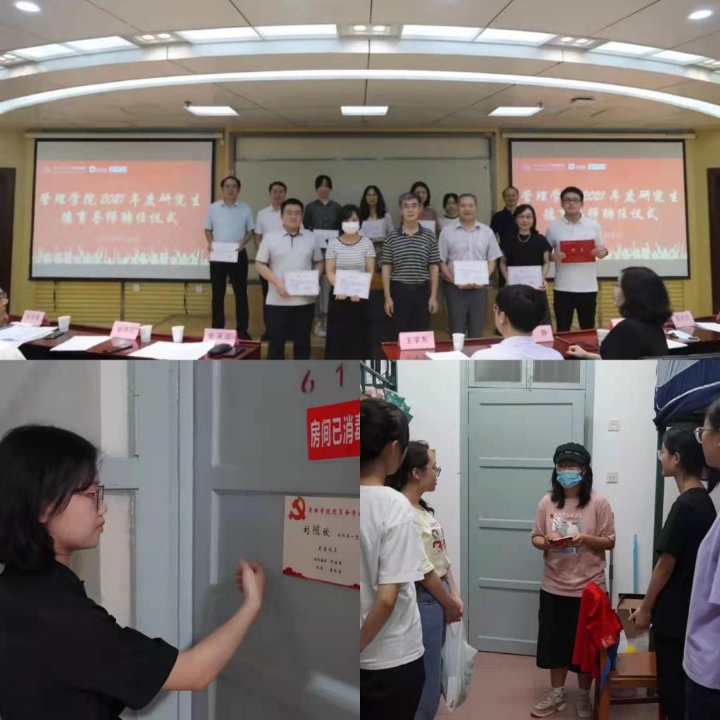 抓好入学第一环,党员结对导后浪。9月28日,管理学院聘任研究生德育导师,通过德育导师协助导师做好价值引领与学术研究工作,和辅导员一起帮助学生解决困难,推动研究生全面发展。9月4日,管理学院开展 “党员舍导进宿舍”活动,组织一批党员舍导与本科新生结对,在思想上给予引导,在生活中给予帮助,提高新生的党性修养。