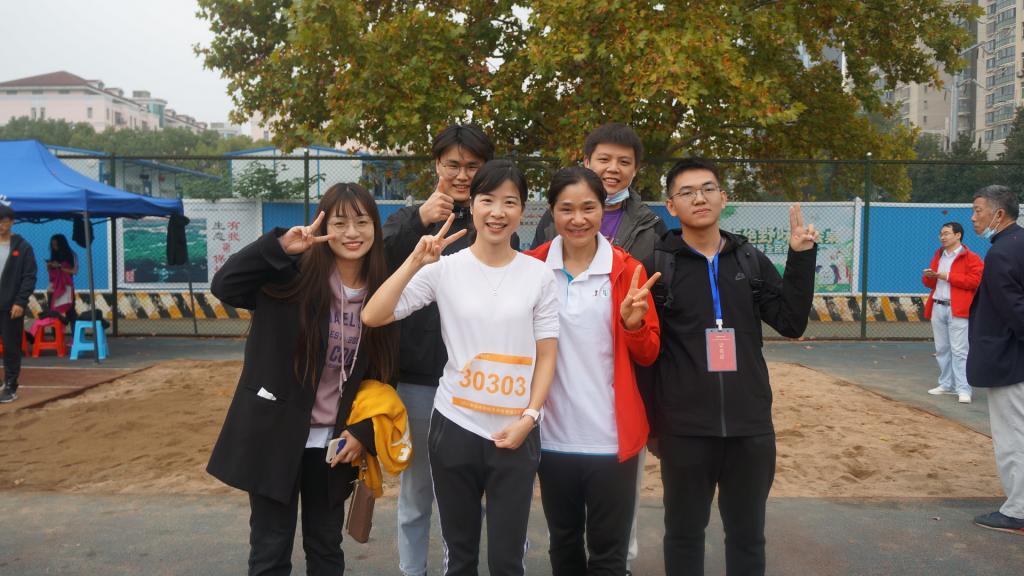 助跑,起跳,腾空,落地,一道紫色的身影从地面跃向空中,一气呵成,迅如雷电。这道身影,就是来自化学与化工学院的张建老师。热爱篮球、热爱运动的他基本每年都会参加运动会。今年,他不仅参加了跳远比赛,还报名参加了5日下午的趣味投篮和其它赛事。当问到张建对于体育的热爱时,他很认真地回答道:“心怀热爱,故永不缺席;胸有成竹,故一往无前。”他还说,运动会不仅是一个展现自我的舞台,更是一次难忘的回忆。