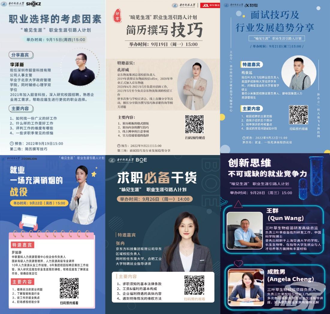 据悉,就业指导与服务中心近期开展了一系列的生涯教育活动,涵盖求职就业、留学规划、考研分享、个体成长等,参与到华中大学子成长成才的方方面面。该系列活动,提高了就业服务精准性和实效性以及学生职业素养与综合能力,促进学生更高水平更高质量就业。