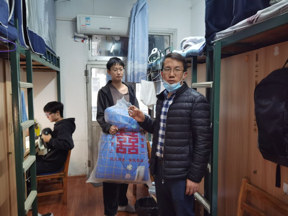 11月29日上午,基础医学院党委书记秦选斌,党委副书记齐海波以及各年级辅导员走访学生寝室,为有需要的学生送上30余床爱心棉被。“考虑到突如其来的大幅度降温,加上疫情期间快递不畅通,给部分学生带来物资不足等实际困难,我们已经迅速统计同学们物资需求,一天内完成棉被的采购和分发,送到学生手上,希望同学们能够感受到学校和学院的关心,温暖过冬,安心学习!”走访中,学院领导和辅导员们对学生的学业备考、身心健康表示关切,对大家的思想问题和实际问题予以回复,安抚学生受疫情影响产生的负面情绪,给予正确的引导和帮助,同时也嘱咐大家注意宿舍用水用电安全,让同学们在寒冬中感受到浓浓的温暖。