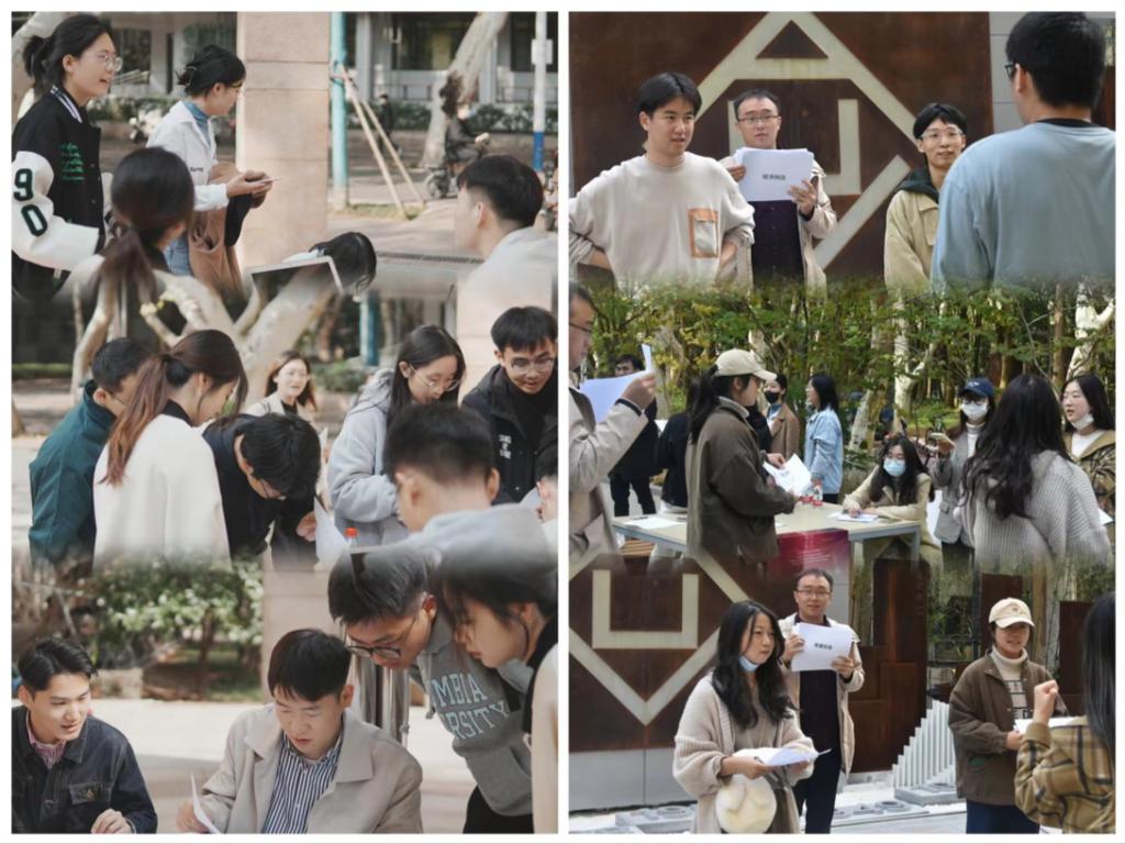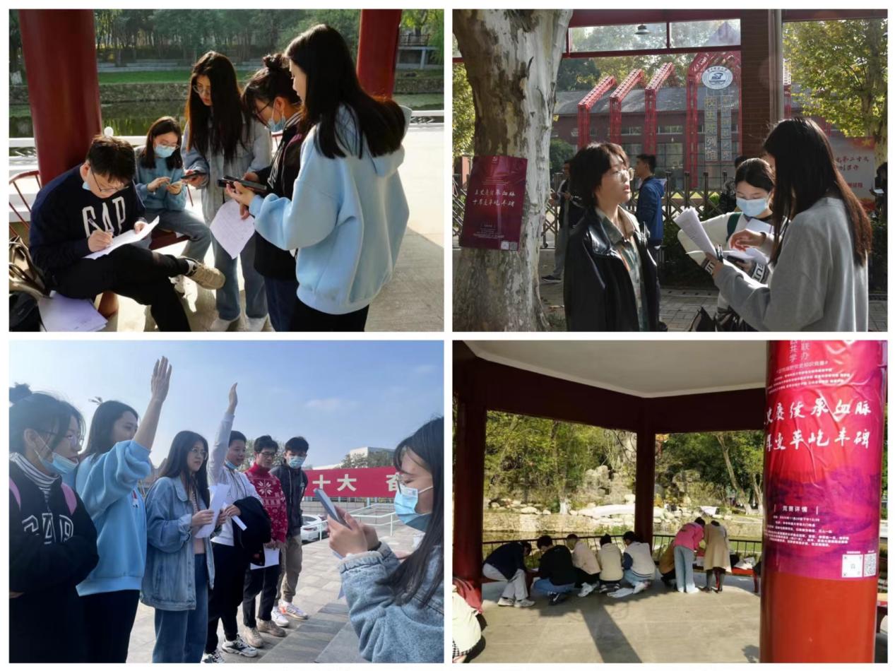 本次活动在校内设置5个分赛场,考察主题分别为党史、新中国史、改革开放史、社会主义发展史、中华民族发展史。参赛人员根据限定范围,不可以使用任何交通工具,徒步到达比赛分场地并完成答题。活动过程中,一组选手在校史馆点位深情背诵了“今日的中国不仅仅是中国之中国,而是世界之中国,并指导支援世界各国,彰显国之大气”,将现场气氛推向高潮。此外,在醉晚亭、建规院、世界文化名人园和光谷体育馆分别开展的“试卷盲盒”、“你说我猜”、“历史事件连连看”与中华民族发展史答题活动以同学们喜闻乐见的方式引领大家共同学党史、明初心。