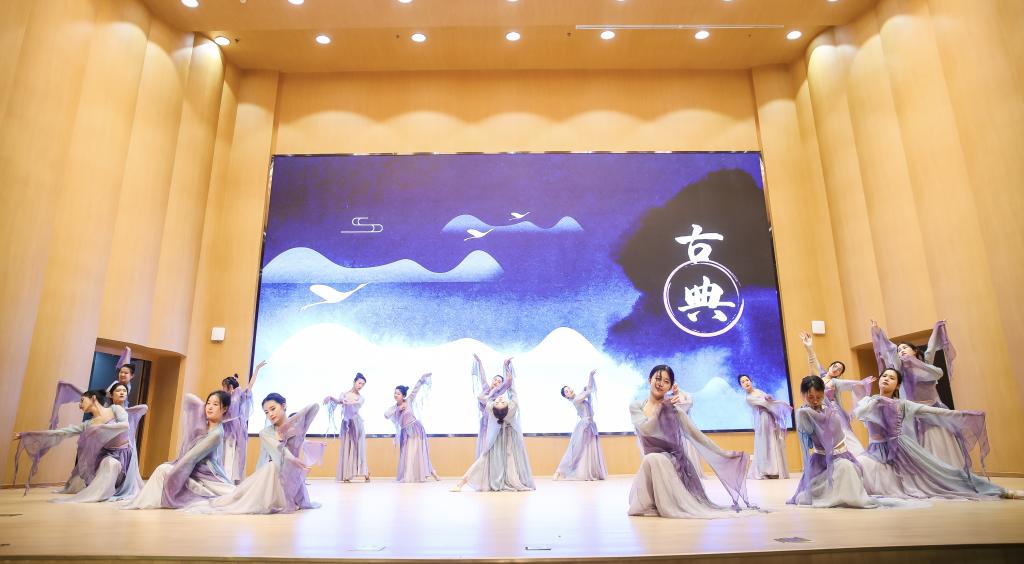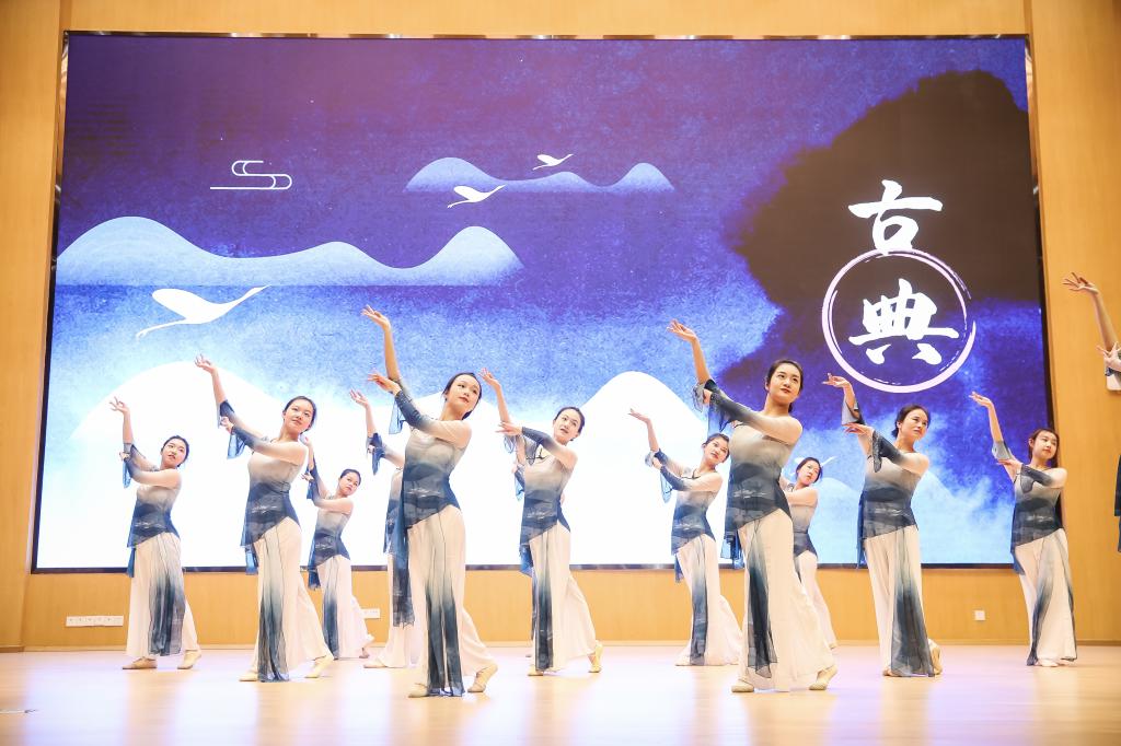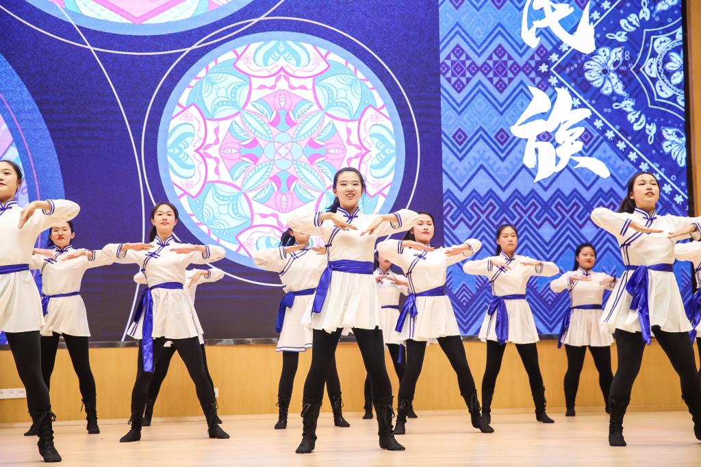 来自艺术实践课《中国民族舞蹈体验》(教工班)的学员献上了蒙古族舞蹈之手臂元素训练组合。这段表演集中展现了蒙古族舞蹈具有标志性的柔臂动作,为在场观众带来一场视觉享受。