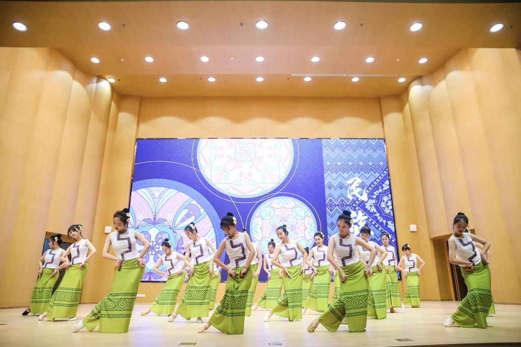 公选课《中国传统节日里的民族民间舞》的同学展示了傣族传统节日《赶摆》,授课教师曾希卓强调节日之于各民族的重要意义,让同学们通过节日体验、音乐欣赏、服饰穿戴以及基本舞段传习,再现傣族传统节日的场景。