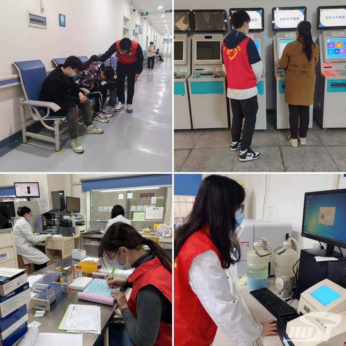开展“健康加油站”校医院志愿服务活动。基础医学本科生党支部充分发挥党建引领团建的先锋作用,联合基础医学(强基)2101、2201,基础医学2101、2201等4个团支部在内的多个团支部长期扎根同济医学院校医院,开展“健康加油站”志愿服务活动。同学们利用周末时间投身志愿,担任体检区导诊、自助机使用指导、检验科助理、校医院公众号运营等志愿者。该活动开展一年以来,共吸引了88位志愿者,累计140余人次参与到校医院志愿服务中。志愿者们耐心倾听患者心声,为患者们提供关怀和帮助,传递温暖而炽热的志愿精神,在实践中体现医科学子的为民服务情怀。
