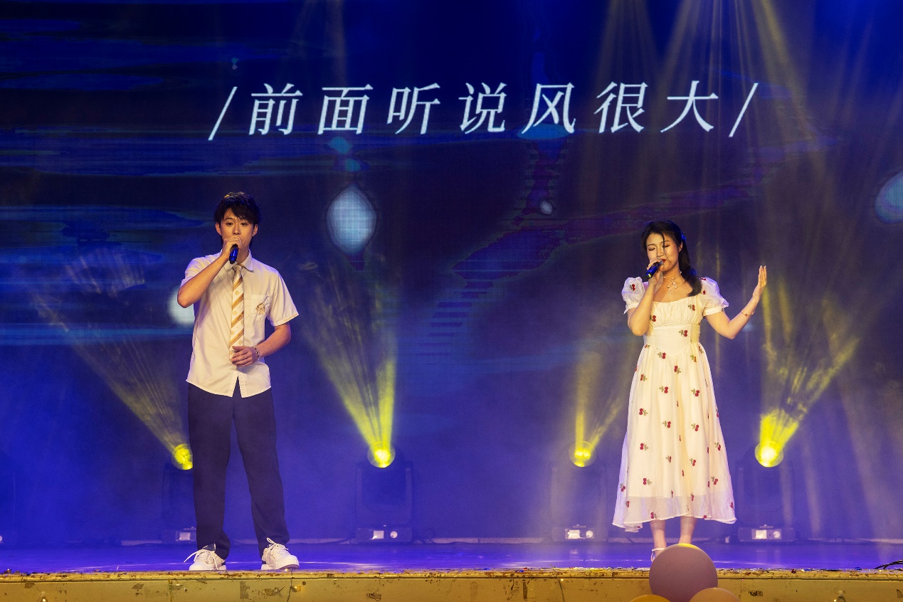研究生赵方婧、刘斯博为大家带来歌曲《飞云之下》,歌声悠远绵长,嗓音清亮动人,唱出了生活、人生及关于家的感悟,引起现场观众的共鸣。