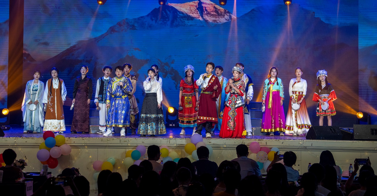 本研同学带来的歌曲《生如夏花》,在几声鼓点后,随着一声浑厚的中国大鼓,丰富的配乐与和声骤然响起,现场观众仿佛纵马跃入了一个绚丽缤纷的世界,眼前豁然开朗。演员们身穿各民族特色服装,手持民族乐器,把中国的民谣和民族音乐碰撞交织,演唱了这首灿烂奔放的世界风歌曲。