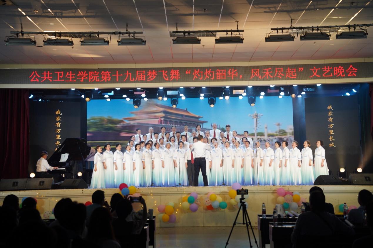 冯霞老师和公卫学院初星艺术团一起带来了歌曲串烧《初星海洋》。不同风格的歌曲相连,别有一番风味,合唱《我们都拥有海洋》,淡淡离别的感伤中,又充满了对未来的希望,献给即将毕业的19级本科生,祝愿他们做最好的自己,去勇敢挑战未来没有参考坐标、但充满无限可能的未知旅程。