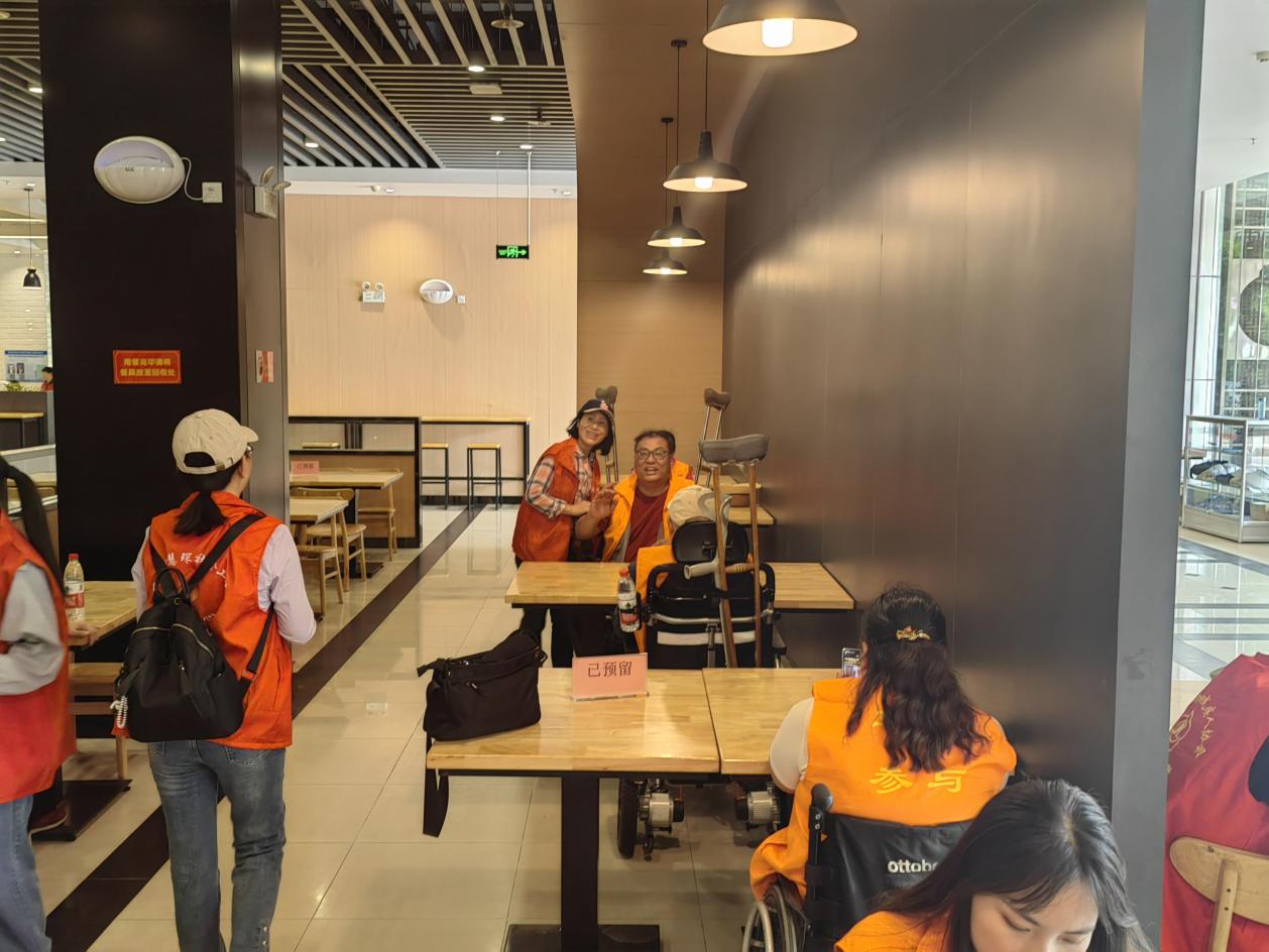 在百景园食堂和校医院,参与者们共同体验了生活环境无障碍设施,感受了校园无障碍环境带来的便利。游览过程中,学生志愿者与残障人士畅谈家常、结对出行,形成校园一道亮丽的风景线。