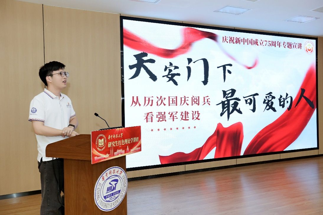 武汉大学学习习近平新时代中国特色社会主义思想博士生宣讲团何善平以《天安门下最可爱的人——从历次国庆阅兵看强军建设》为题,从新中国成立以来的15次国庆阅兵入手,讲述了我国国防和军队现代化建设过程中的巨大成就。