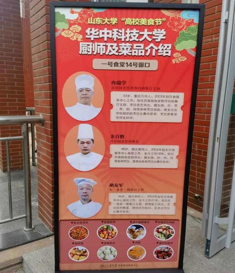 新闻网讯(通讯员 华梓茜)10月14日至18日,应山东大学饮食管理服务中心举办校庆123周年美食节的邀请,总务后勤处饮食服务中心积极组织选派厨师精英前往参加。在山大美食节上,由raybet电竞竞猜app厨师打造的地道纯正湖北美食,带给山大师生带来了全新的美食体验,让大家充分品尝到了荆楚大地的别样滋味。