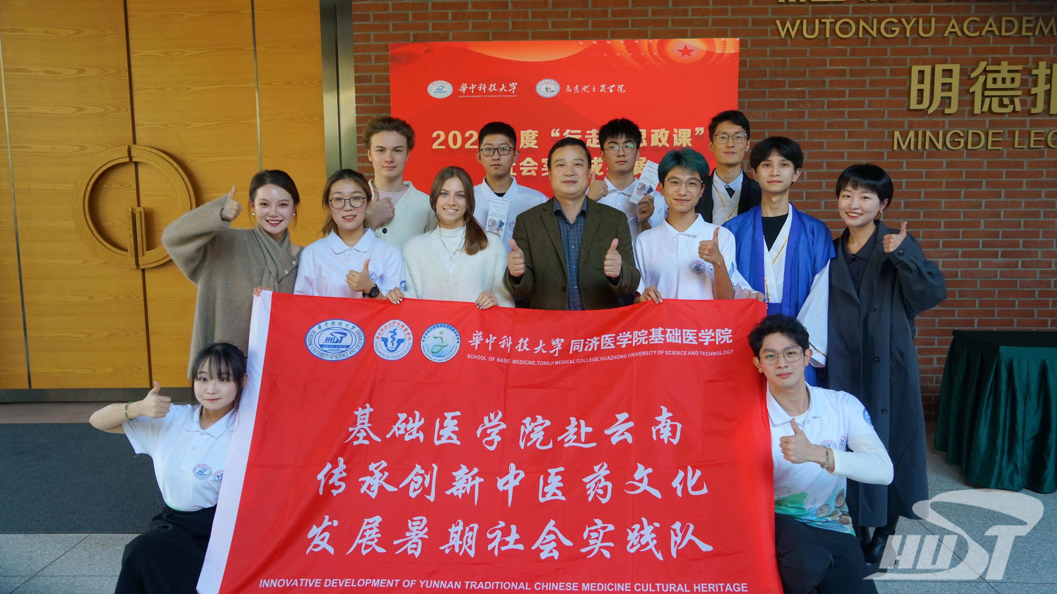 为全面贯彻落实习近平总书记对学校思政课建设作出的重要指示批示精神,基础医学院赴云南传承创新中医药文化发展暑期社会实践队“坚定习近平新时代文化思想引领,传承创新中医药文化发展的实践调研”项目作为学校重点立项资助项目(全校仅20项),以习近平新时代中国特色社会主义思想特别是习近平文化思想为引领、以“十四五”中医药发展规划为背景、以传承创新中医药文化为目标,由基础医学院党委副书记田德生、同济医院二级教授涂胜豪、辅导员王卉、王安琪带队指导,汇集两个学院、四个专业的学子,组建“本硕博+国际”四级联动团队,奔赴昆明、昭通彝良、楚雄等地开展实践调研。经提交结项材料进行集中会评,项目报告被遴选为优秀社会实践报告,团队进入现场汇报答辩和风采展示环节。经过充足的准备,实践队运用创新思维,以“演讲+舞台剧”形式进行项目风采展示,通过“小剧场”生动形象地重现了实践队参观中医药博物馆、入户、义诊、宣讲等实践调研内容,获得了师生的一致好评,在全校10项展示汇报的优秀社会实践项目中荣获第一名。