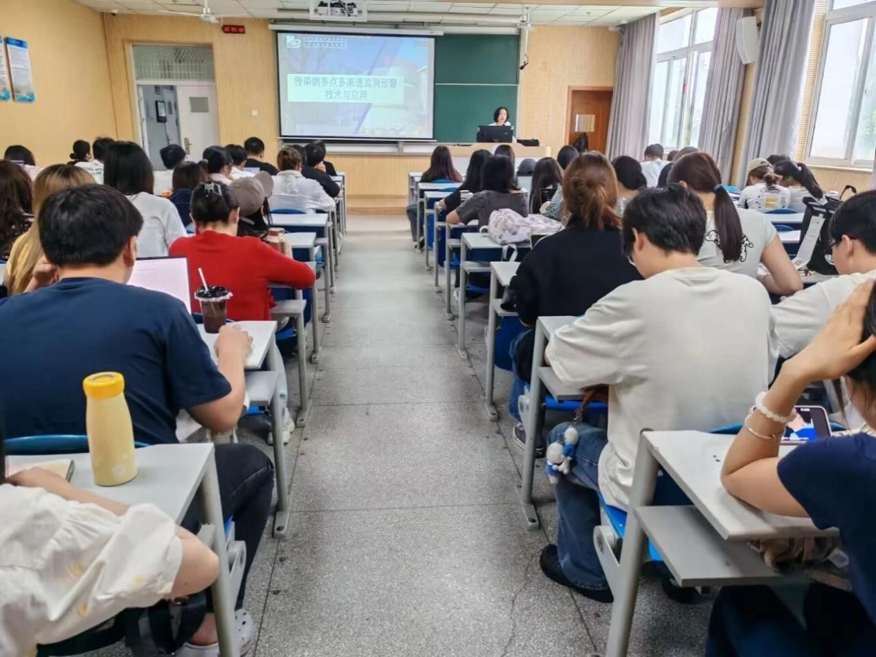 宜昌市疾控中心公共卫生首席专家马蓓蓓主任以宜昌市“智慧疾控一体化平台”为例,分享了该平台如何打通医疗机构、社区、交通等部门数据,实现疫情动态可视化、风险趋势预测及应急资源精准调度。讲座使学生认识到,大数据、物联网、人工智能等技术的融合应用,大幅提升了城市传染病监测的响应速度与精准度,为疾控决策提供了科学依据。