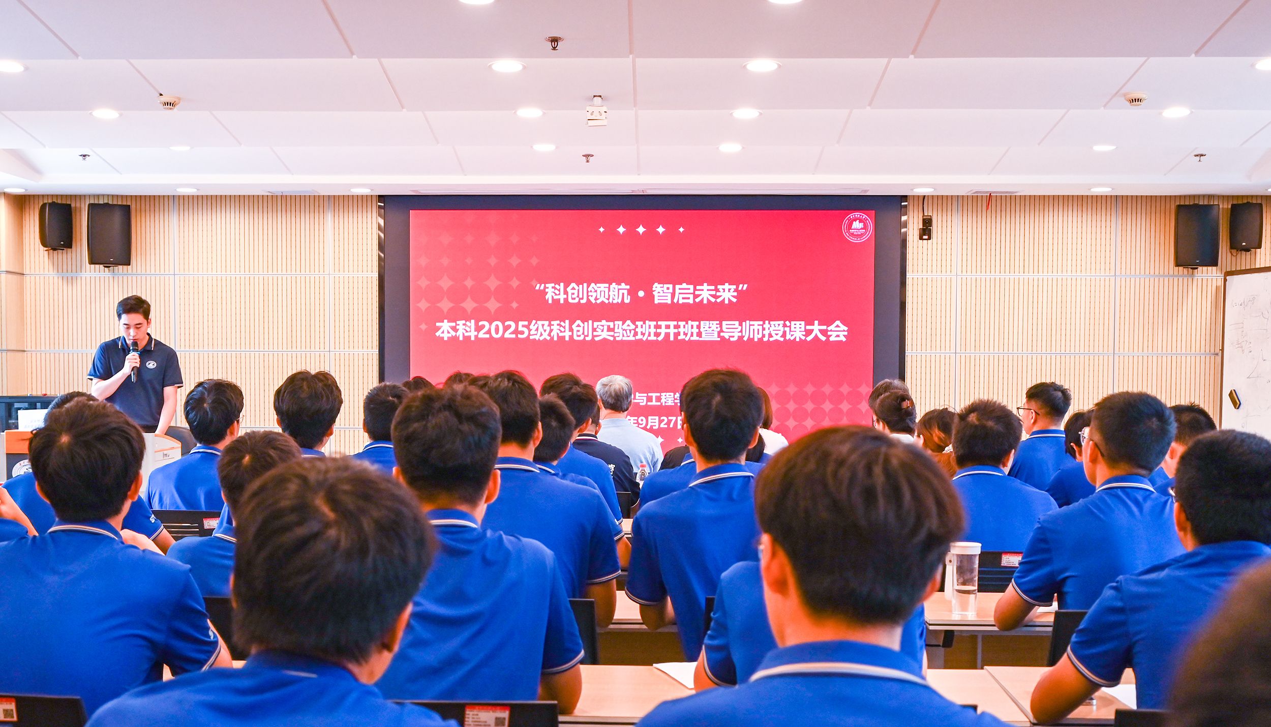 新闻网讯(通讯员 龚凌轩 魏航航 冀艺)9月27日,“科创领航·智启未来”机械学院本科2025级科创实验班开班暨导师授课大会在先进制造大楼东楼召开。李培根院士,校友、阿博茨科技首席执行官杨永智,院党委书记张芬、副院长李新宇、院党委副书记张绍浩,科创实验班相关负责人、辅导员参加活动。