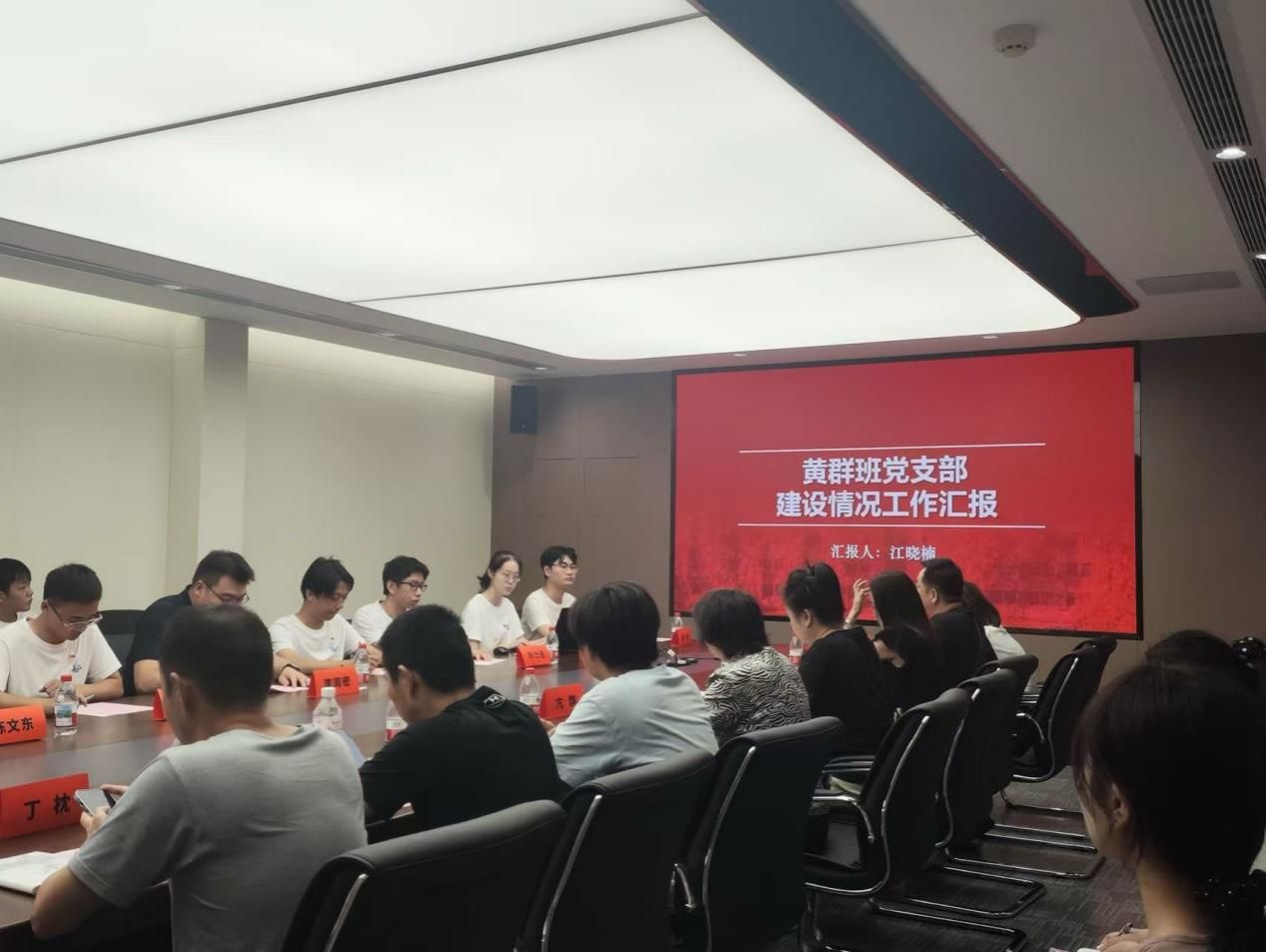 黄群班党支部书记江晓楠汇报了黄群班党支部的建设情况,从“学习黄群精神、践行黄群精神、弘扬黄群精神,引导同志们选择成为黄群”四个方面汇报了黄群班党支部的建设思路。