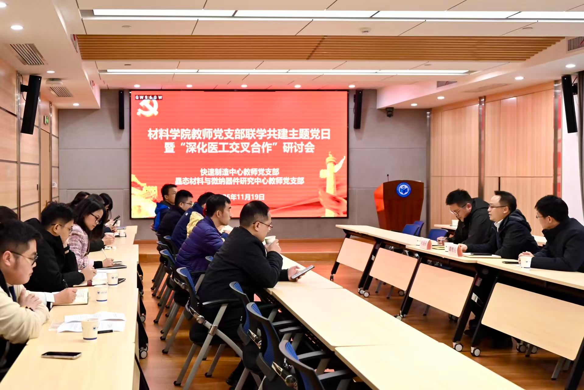 新闻网讯(通讯员 王箫侣)为深入贯彻党的二十届四中全会精神,以高质量党建赋能高水平科技创新,11月19日,材料学院快速制造中心教师党支部和晶态材料与微纳器件研究中心教师党支部开展联学共建主题党日暨“深化医工交叉合作”研讨会。