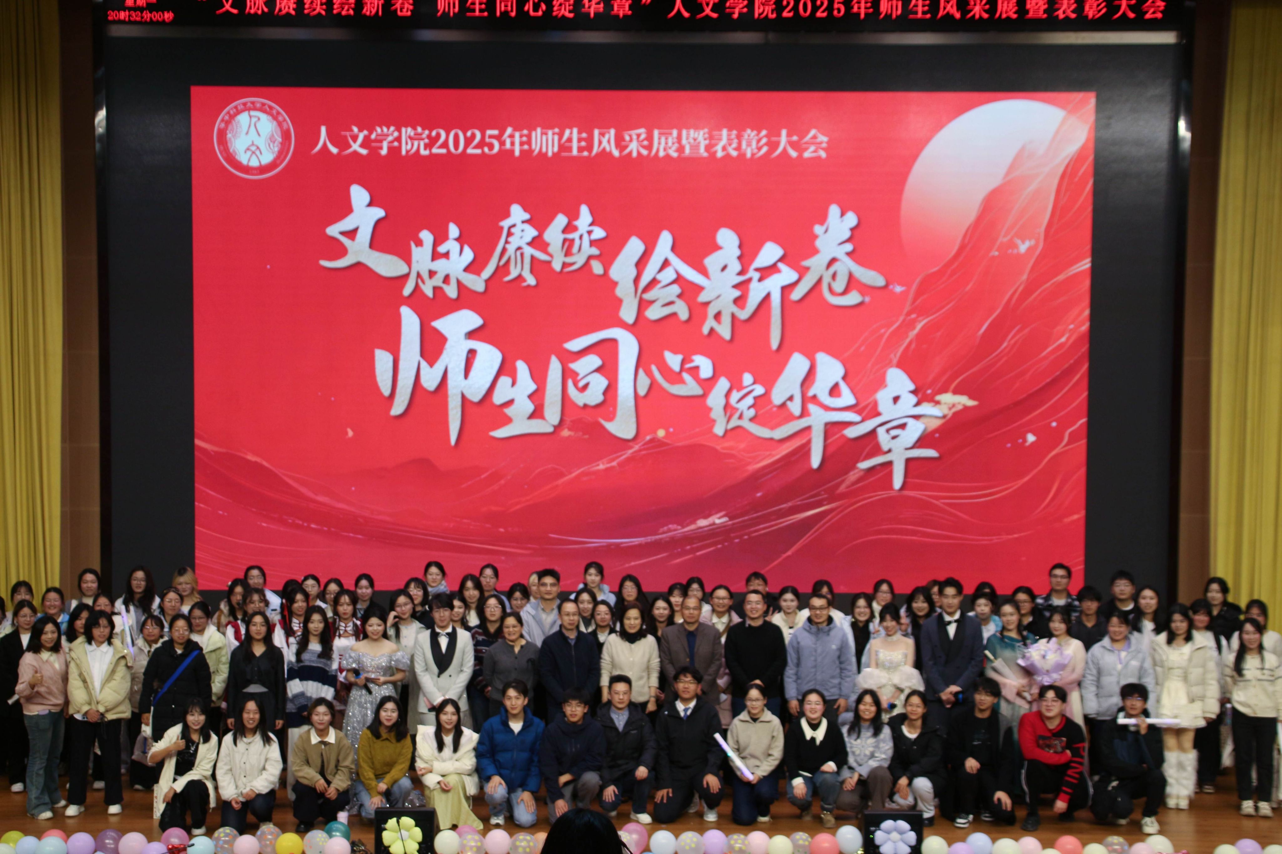 新闻网讯 12月8日,人文学院2025年师生风采展暨表彰大会举行。院党委书记刘婵娟、院长黄仁瑄、副院长李军均、院长助理刘星与全院师生代表欢聚一堂,共同见证年度盛会。