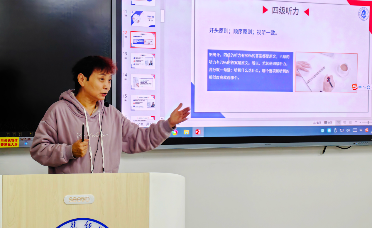 课堂,作为教学工作的核心阵地,亦是教师才华与能力闪耀的舞台。兰素萍每周精心筹备并讲授12堂大学英语课,在教学中注入对学生无限的爱和对教育事业的无限热情。精心筹备的内容让一个个课堂精彩纷呈,唤醒了学子们的求知欲望,课堂“抬头率”不断提高,师生互动频繁,氛围温馨而热烈。