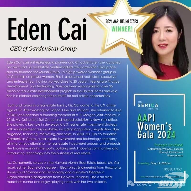 毕业后,蔡虹进入商业领域,逐步展现出她在金融和地产投资中的才华。从最初的团队成员到管理大型项目,她曾在美国和亚洲负责多个地产开发投资项目,总额超过50亿美元。在这些项目中,她不仅磨练了商业洞察力,更学会了如何在跨文化环境中与不同背景的团队协作。2020年,新冠疫情席卷全球,这场危机也给了蔡虹一次重新审视事业方向的机会。同年,她与四位合伙人共同创立了GardenStar公司,专注美国东南部的地产开发投资,致力于为工薪阶层提供优质住房。