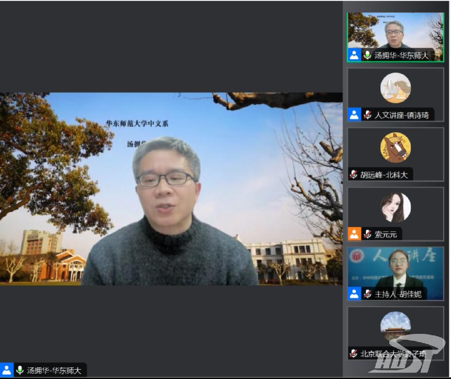 新闻网讯(通讯员 陶艾兰)4月10日,第2514期人文讲座在线上举行。华东师范大学中文系教授、中国文艺理论学会理事、中华美学学会理事汤拥华老为师生带来了一场题为“无名者的壮游——风景批评视角下的班宇《逍遥游》”的精彩讲座。