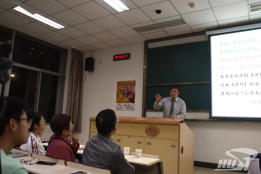 新闻网讯(通讯员 余锁湘 耿璇)4月23日,第2517期人文讲座于东九楼D115举办。上海师范大学二级教授、博士生导师、复旦大学首届文学批评博士、国家重大项目首席专家、中国《文心雕龙》学会副会长、中国作家协会会员、上海朗诵协会会员曹旭教授为师生带来一场主题为“唐诗的旅行”的讲座。