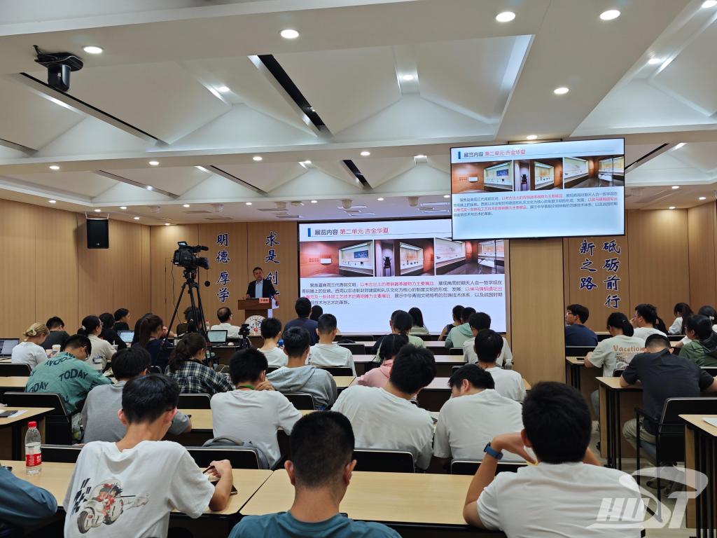 王晓毅以时间为轴线,详细阐述了展览的四个单元:“远古华夏”“吉金华夏”“多元华夏”“人文华夏”,重点介绍了展览在内容和形式上的创新之处,即如何通过深度挖掘文物资源,呈现中华文明的独特魅力、展示山西在中华文明发展历程中的举足轻重地位。