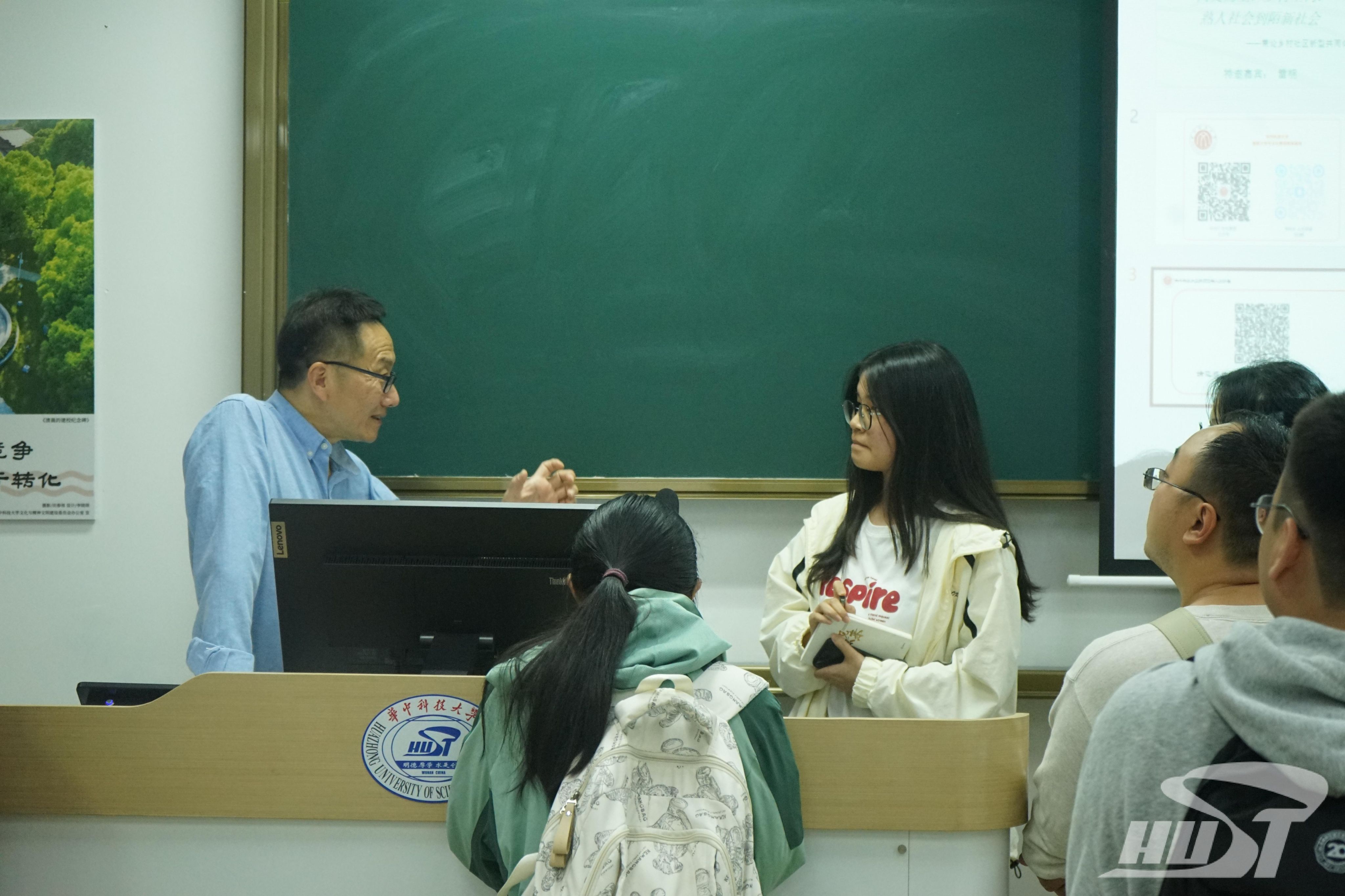 雷明的讲座引发了众多师生的思考。在提问环节,不同专业的师生就本专业与乡村振兴之间的关系踊跃发言。这一环节将讲座理论和生活实际相结合,听众更加深刻地了解了乡村新型关系的变化,也激励了更多同学立志为祖国的百年目标贡献力量。