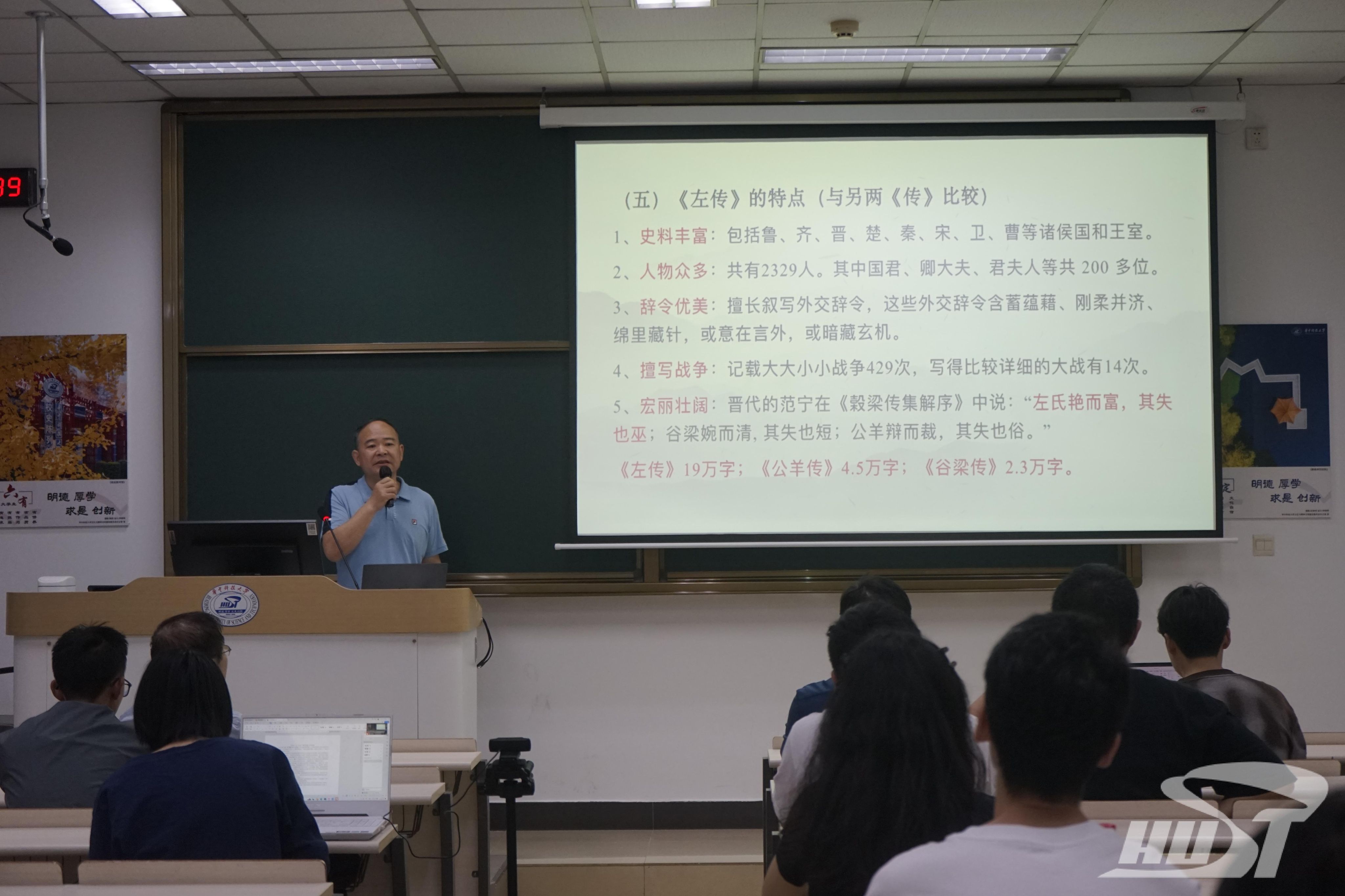 新闻网讯(通讯员 刘念瑜)5月28日晚,第2562期人文讲座于东九楼D107举行。湖北省综合交通运输研究会会长王阳红以“从《左传》领悟穿越千年的智慧”为题,为师生们带来了一场幽默风趣、精彩纷呈的讲座。