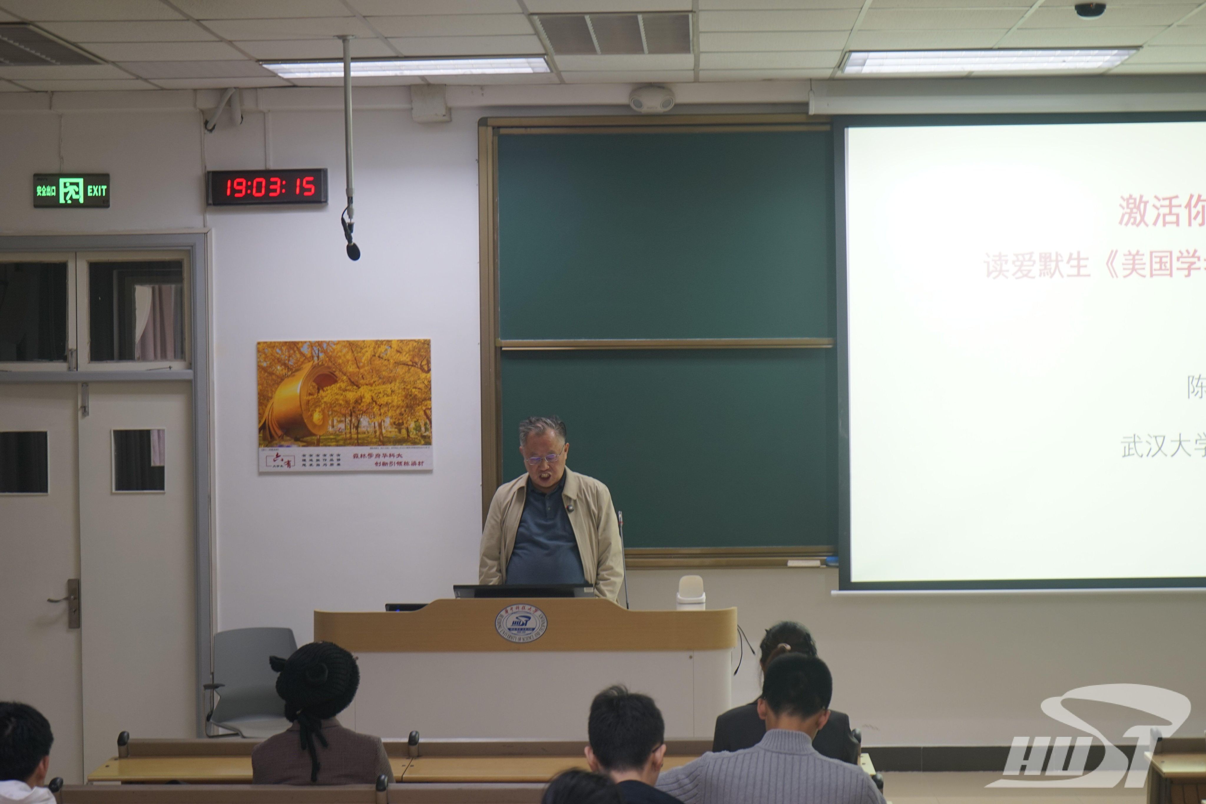 新闻网讯(通讯员 王丹召)10月23日,第2575期人文讲座在东九楼C102举行。武汉大学哲学学院人文社科讲席教授、国际哲学院正式院士、国际科学哲学院正式院士陈波为师生作了题为“激活你的思考:读爱默生《美国学者》和《自我依靠》”的精彩讲座,从哲学角度揭秘自我思考。