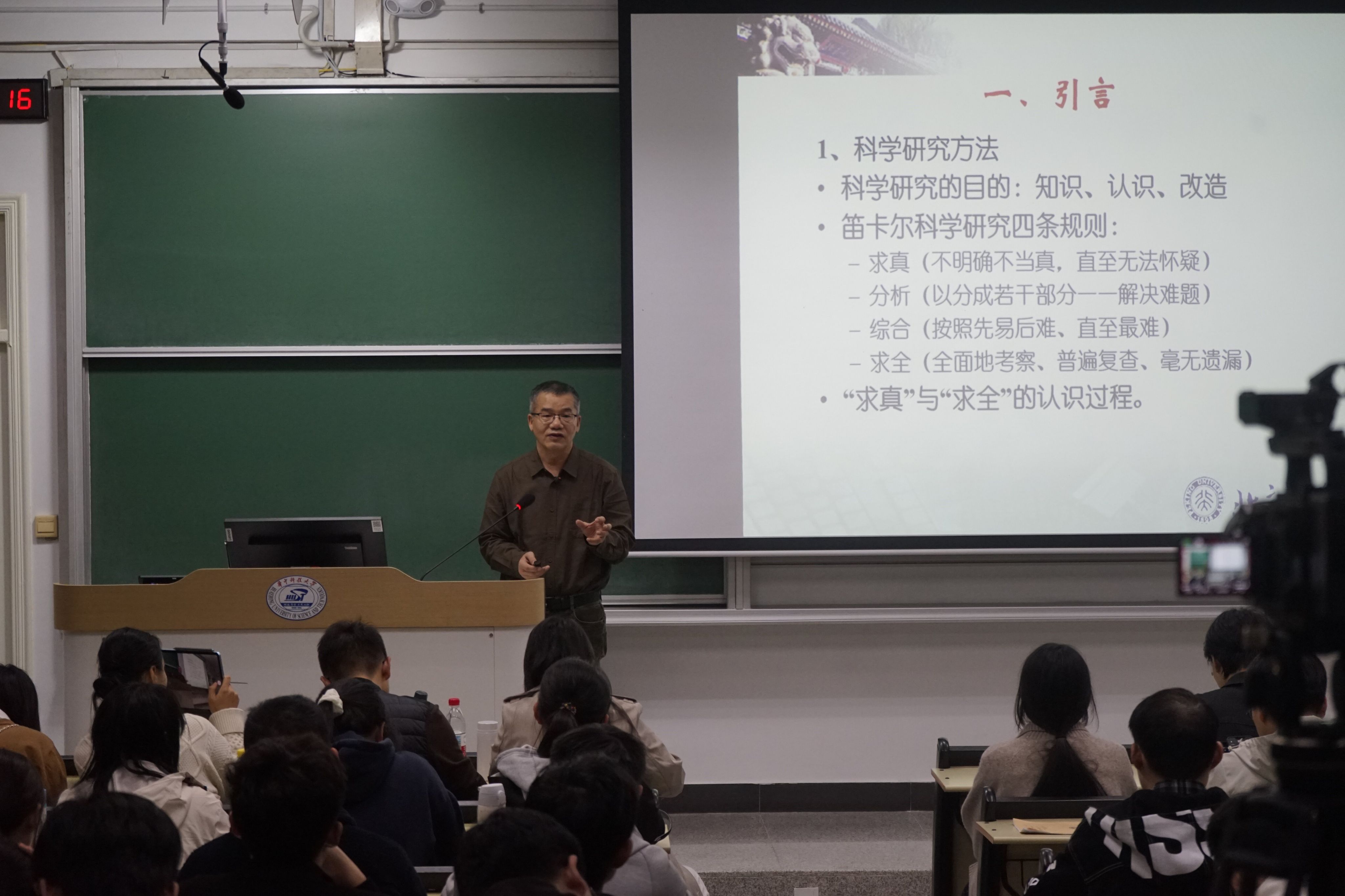 新闻网讯(通讯员 栾笑)11月11日,第2578期人文讲座在西十二楼N101举行。北京大学社会学系教授、北京大学铸牢中华民族共同体意识研究基地研究员、北京大学中国社会与发展研究中心研究员李建新教授为师生作了题为“从费孝通学术研究方法谈起——科学研究的求真求全过程”的精彩讲座。