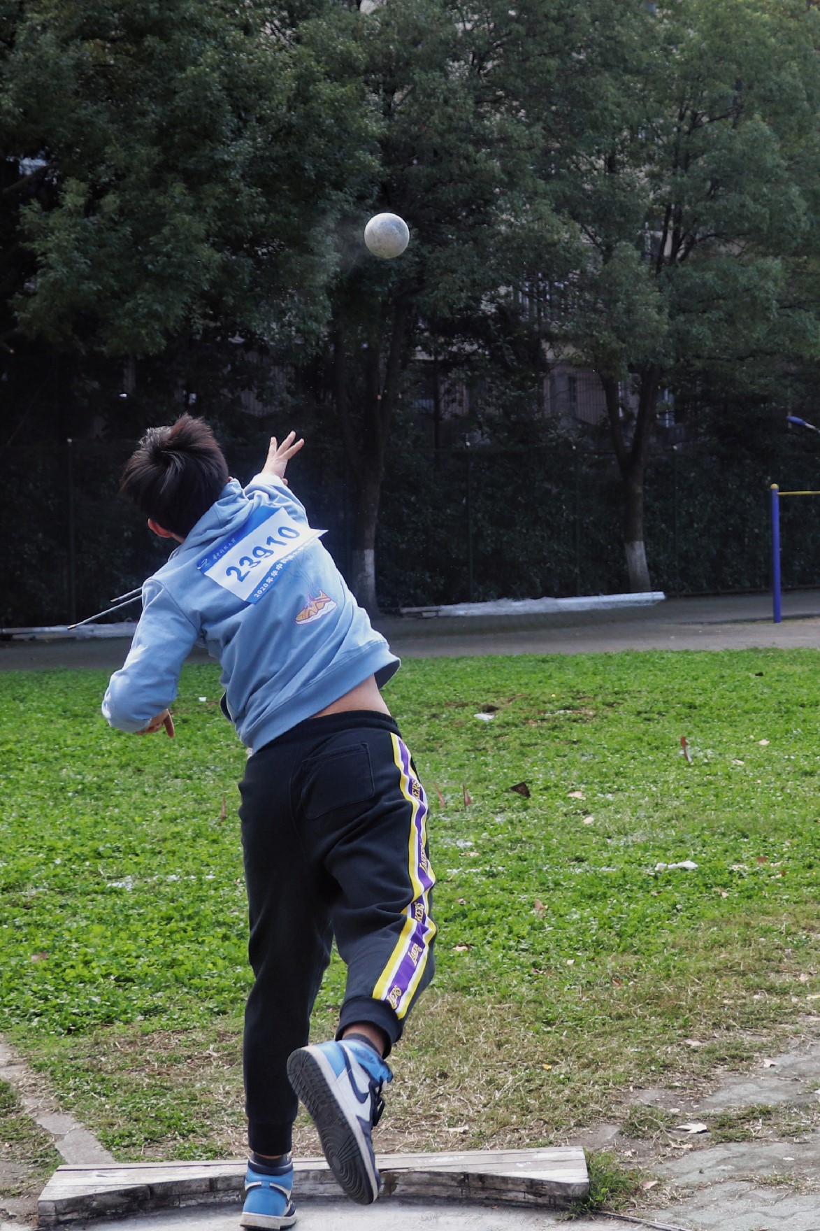 陈子威是公卫学院的一名研究生,他取得了学研乙组男生实心球的第一名。除了已经比完的实心球,他还有铅球和4×100米的项目。