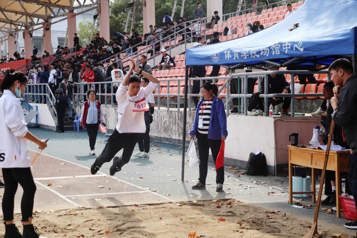 本科男生乙组的立定跳远赛事,在中操北边的沙坑附近举行。经过激烈的比拼,来自新闻学院20级的朱一帆以2.6米的成绩摘得桂冠。